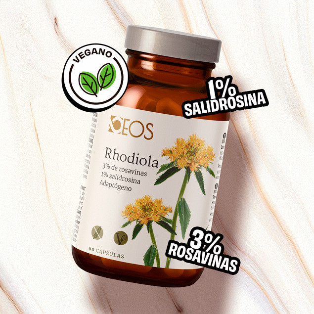 Cada cápsulas vegetales de extracto Rhodiola proporciona 3% de rosavinas y 1% salidrosina como opción saludable y natural para combatir el estrés físico y mental del día a día de una forma más estimulada.